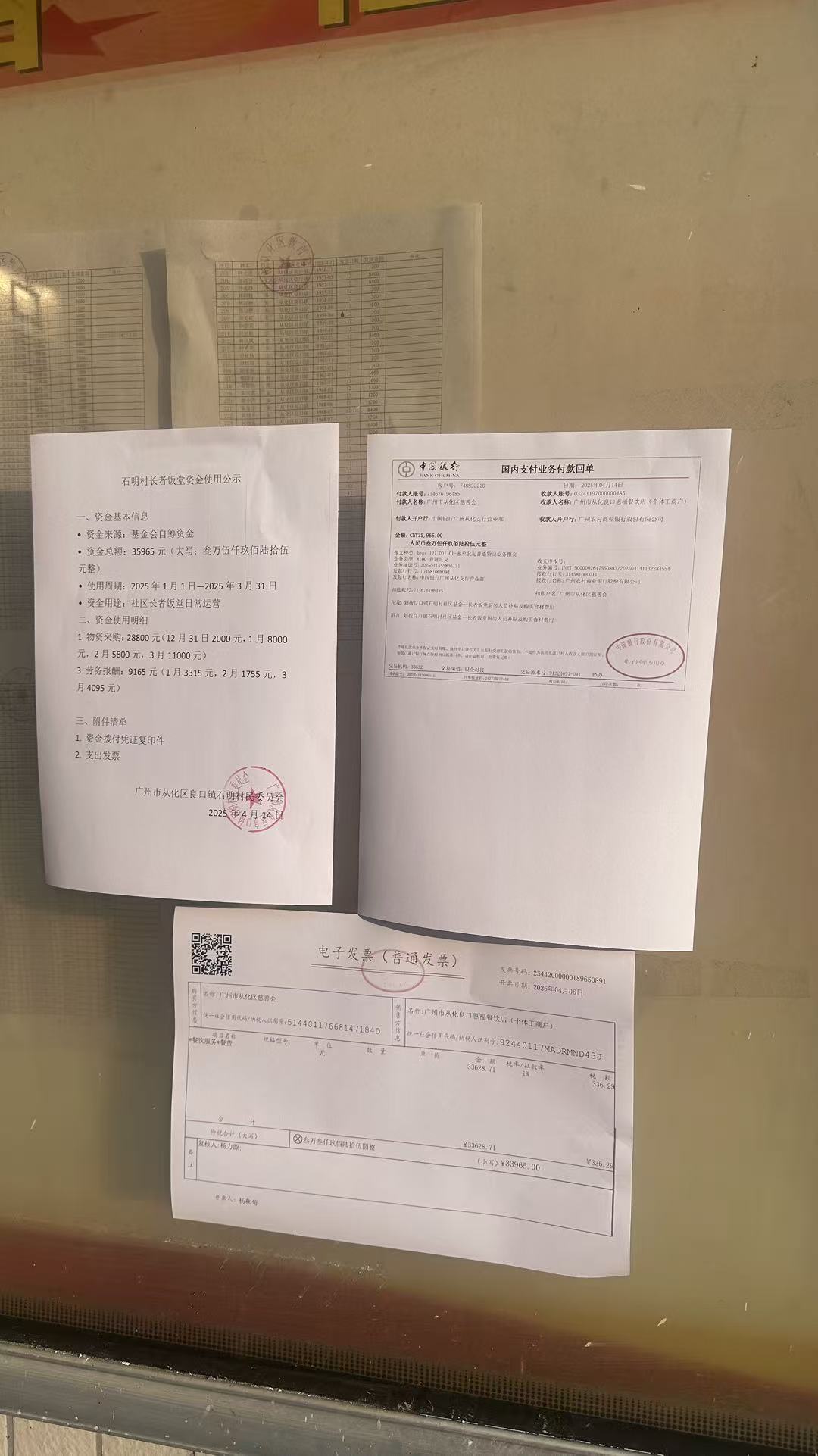 2.以下是本阶段,项目实施过程中相关服务活动的资金收支情况: ①给石明村长者饭堂划拨35965资金用于长者饭堂项目。