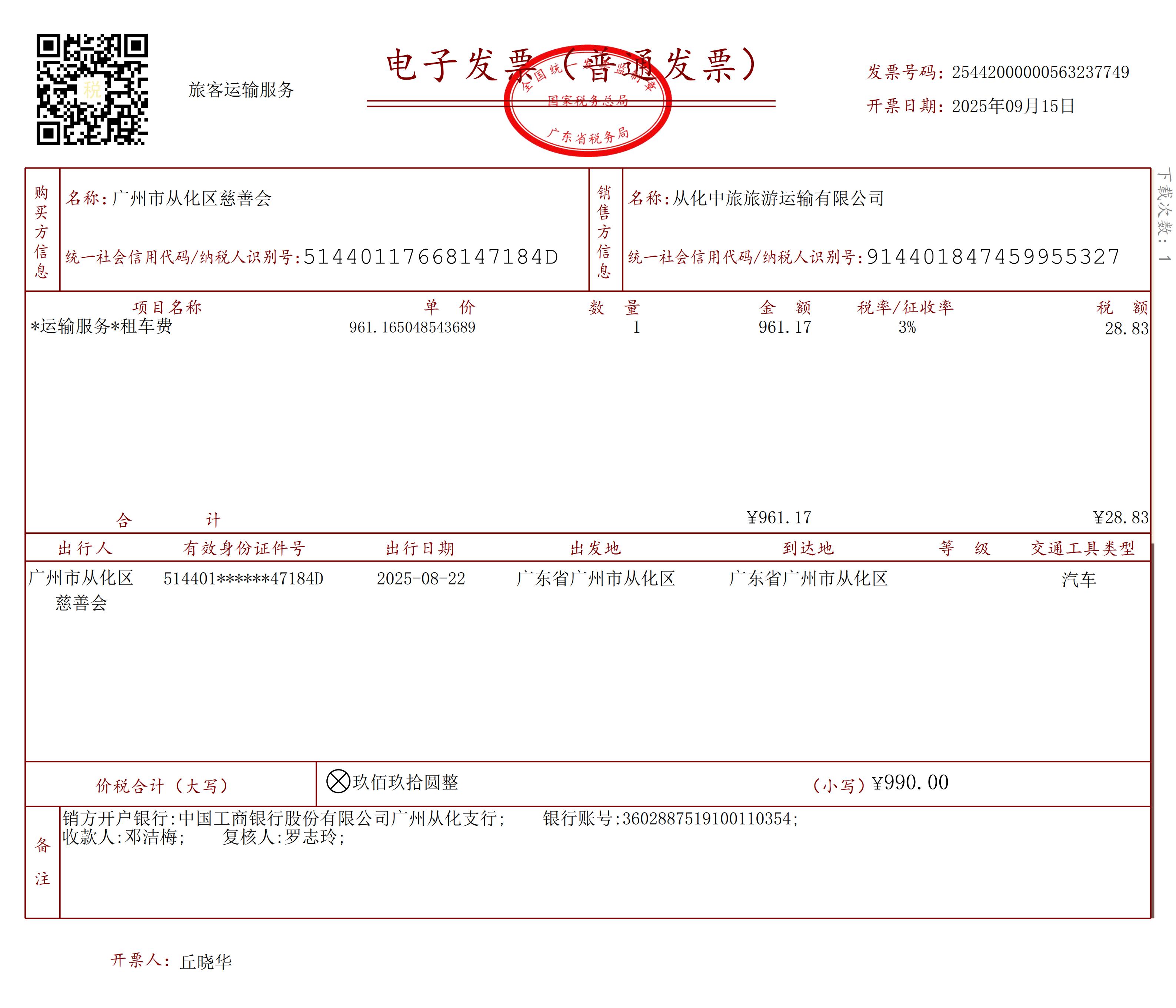 5、经费使用情况:租车费用共990元