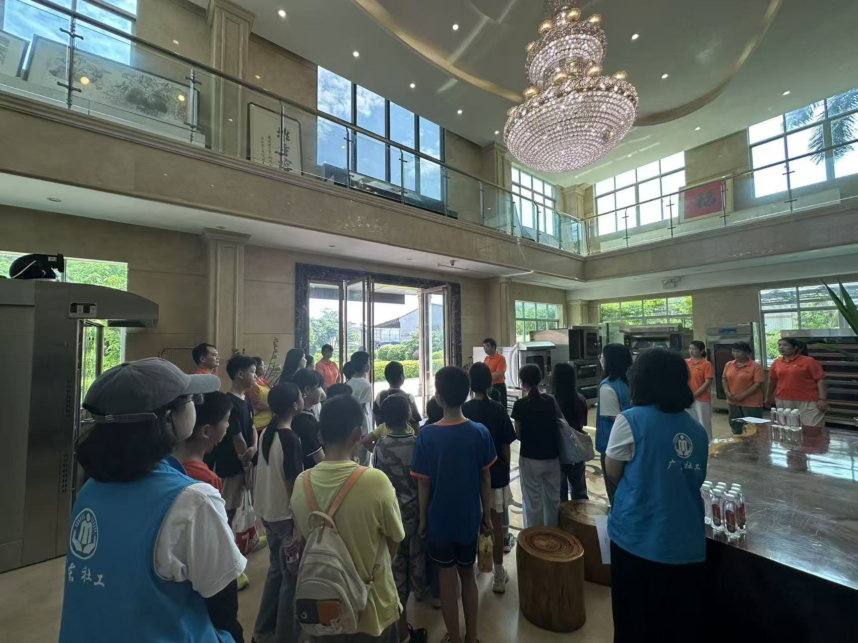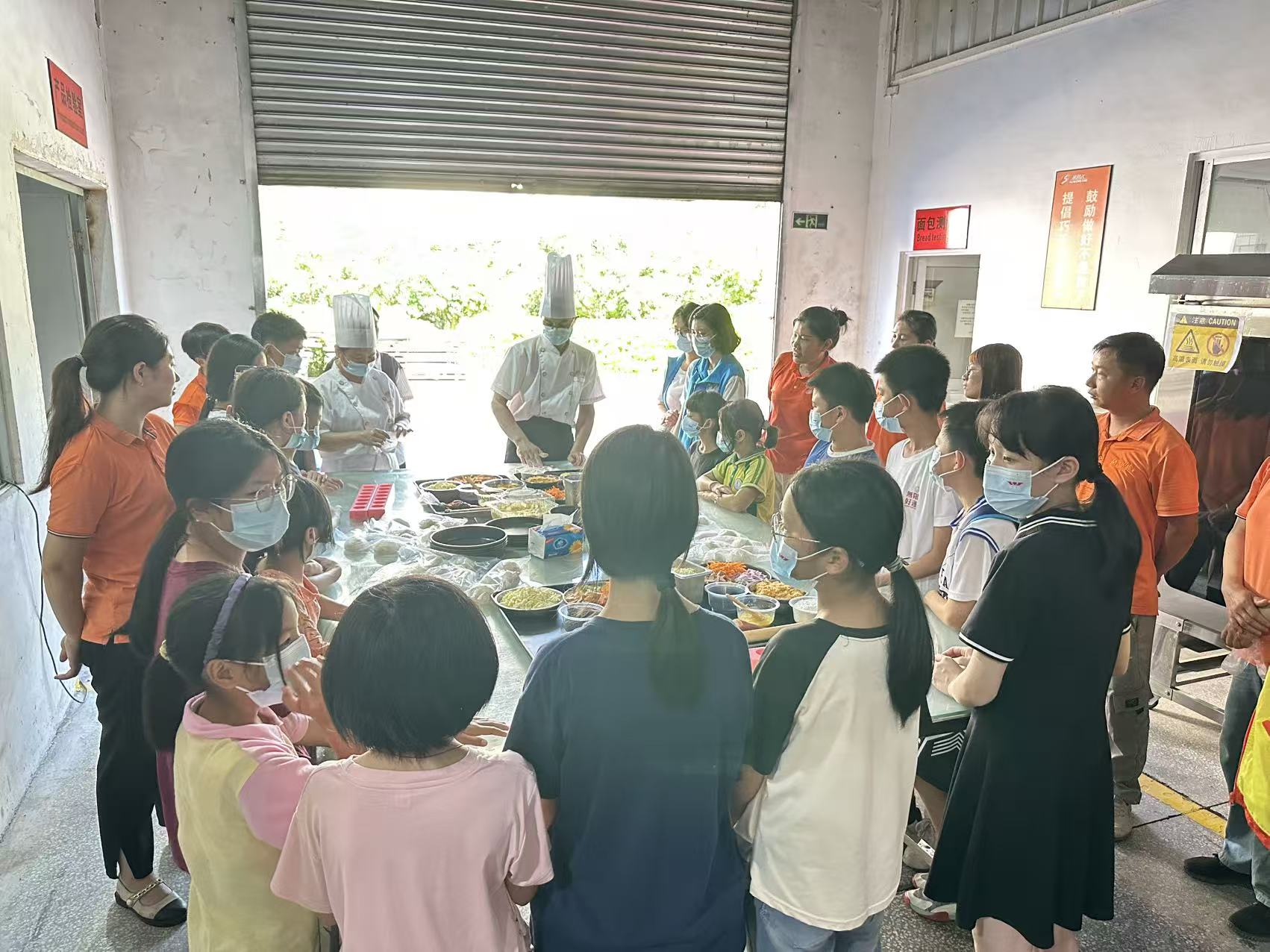 4、活动开展情况:2025年8月22日,社工站积极整合社会资源,充分发挥桥梁纽带作用,成功链接了辖区内两家具有社会责任感的爱心企业——广州市赛思达机械设备有限公司和广州浩恩奉仕食品有限公司的参观学习资源。在社工站的精心组织和安排下,来自辖区的30名困境儿童获得了这次难得的学习机会。活动以食品制作为主要形式,通过理论与实践相结合的方式,让孩子们在专业人员的指导下亲自动手参与食品制作的全过程。这一活动设计具有双重意义:首先,通过实践操作能够有效提升困境儿童的动手能力和实践技能;其次,更重要的是,这种体验式学习为困境儿童未来的角色转变奠定了基础,让他们从单纯的服务接受者逐步成长为有能力服务他人的提供者,体现了社会工作"助人自助"的专业理念。