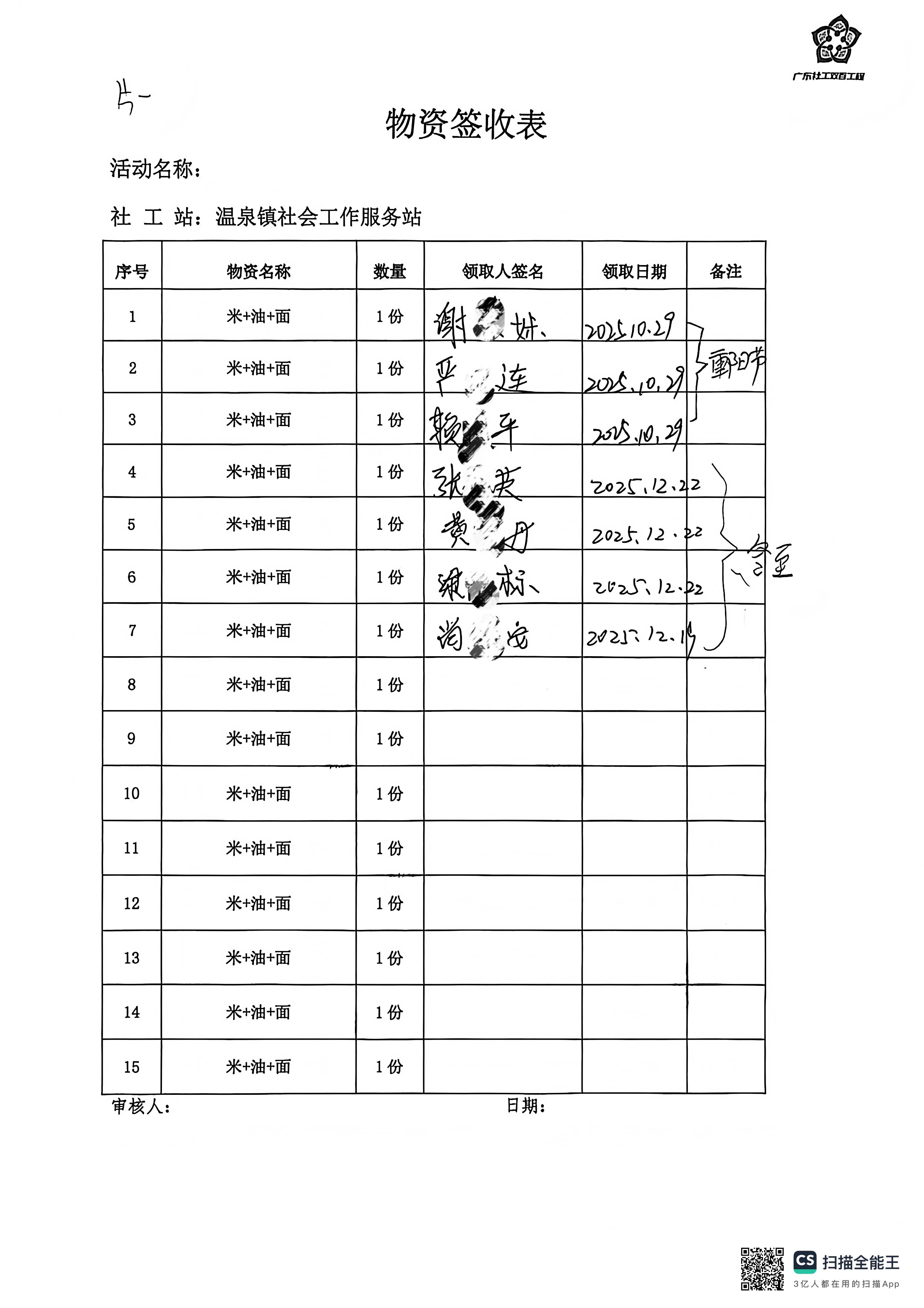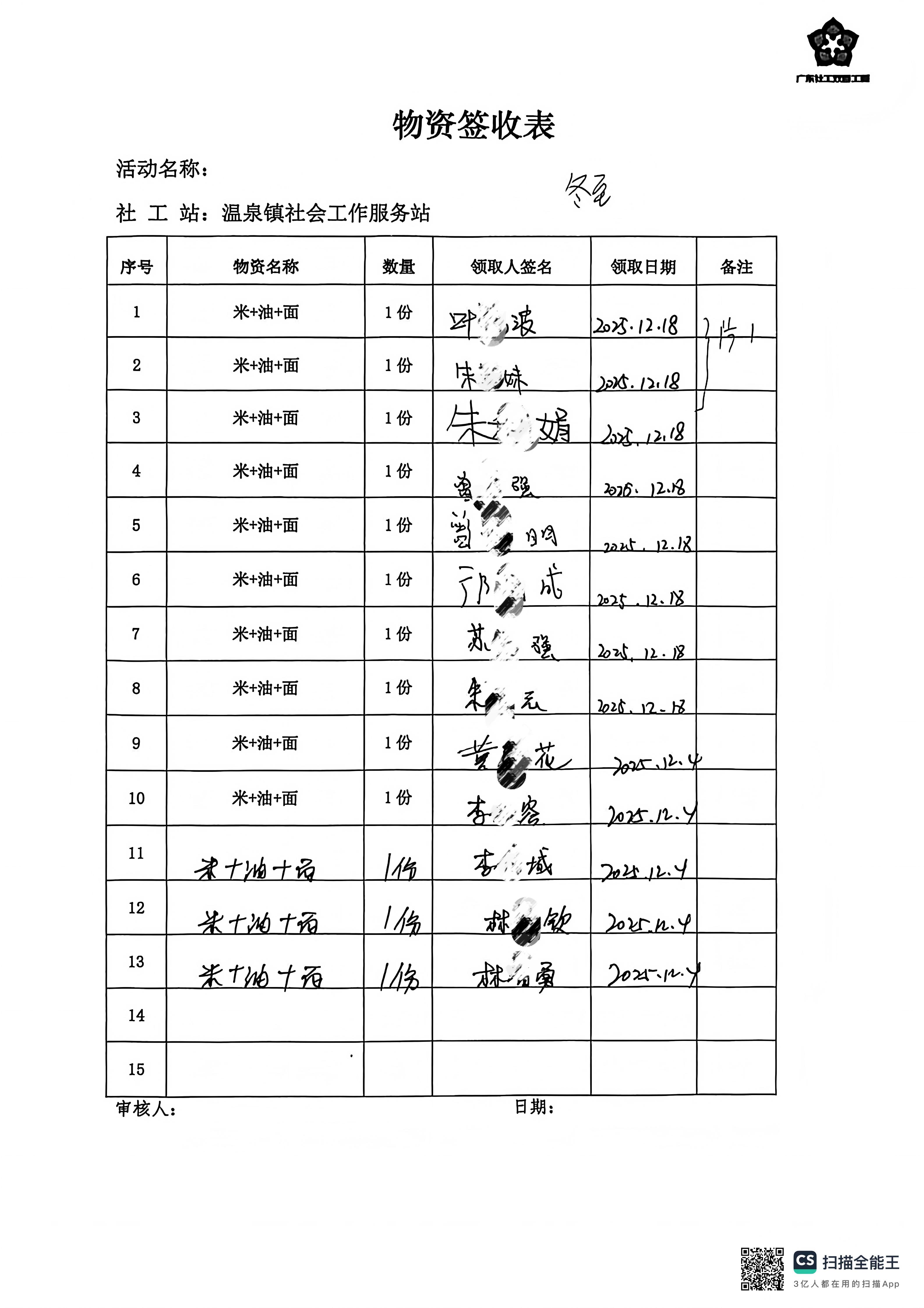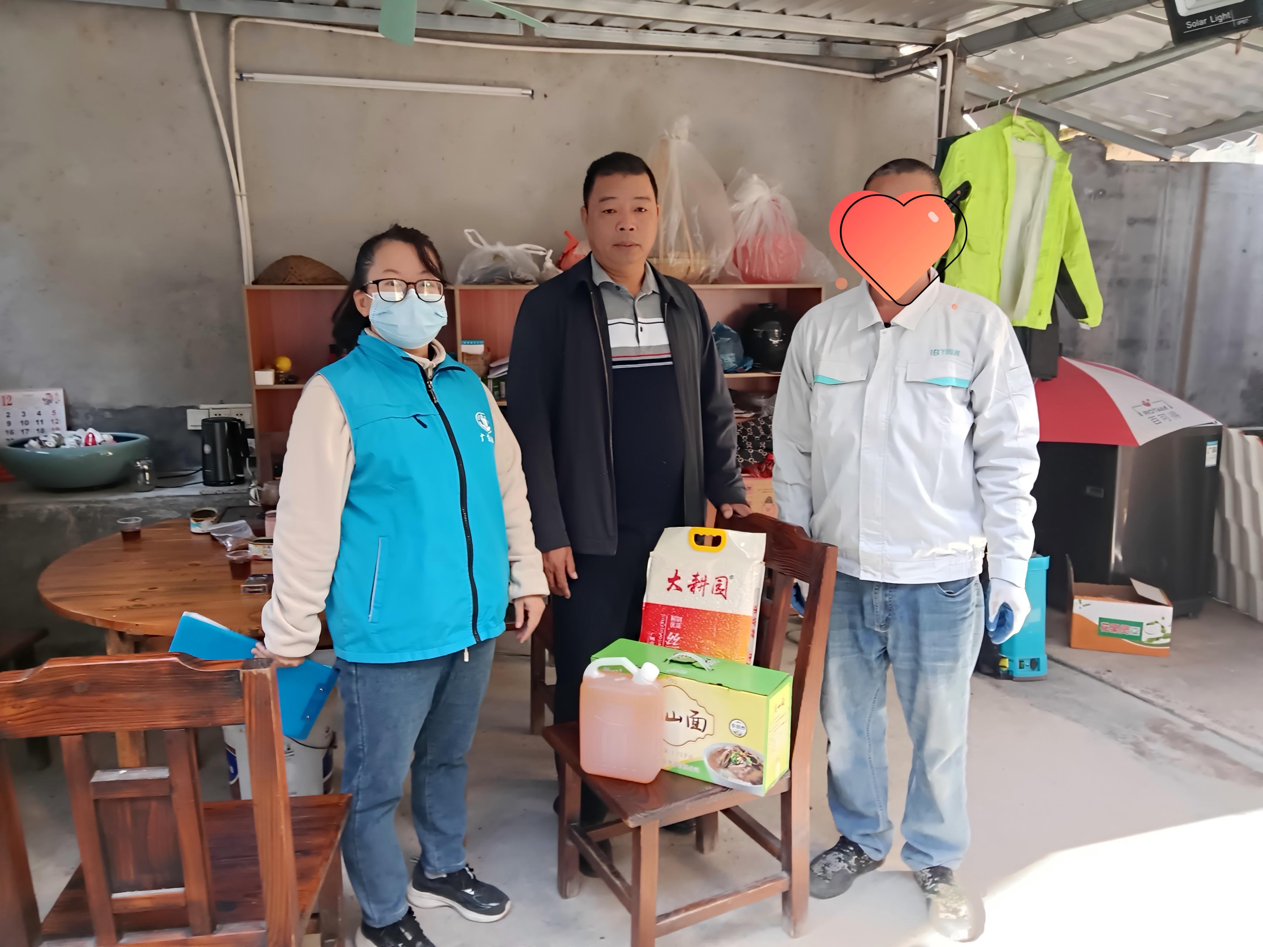4、活动开展情况:2025年12月16日起,温泉镇社区基金联合温泉镇社工站组织面向辖区60户困难家庭开展冬至节日慰问活动,工作人员提前精心准备了包含米、面、油等慰问品,每一份都承载着对困难家庭的暖心关怀。活动中,社工与志愿者们分组上门,不仅为困难家庭送上慰问品,还与他们亲切交谈,详细了解家庭成员的身体状况、生活近况及实际需求,耐心倾听他们的心声,鼓励他们保持积极乐观的生活态度,让困难家庭在寒冬中感受到社区大家庭的温暖与节日的浓厚氛围。