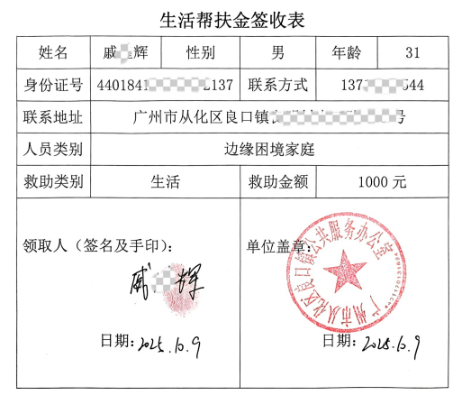 戚*辉,男,良明村人,31岁,与妻子、母亲、儿女一起居住。其妻子没有稳定的工作,母亲没有劳动能力,儿女还在读书。服务对象于5月发生车祸导致身体多方面骨折,治疗花费2万多元,后续仍需要持续治疗,目前服务对象家庭没有稳定的经济收入,此次意外对服务对象家庭造成了一定的经济负担。良口镇社区基金对其进行1000元的生活帮扶。
