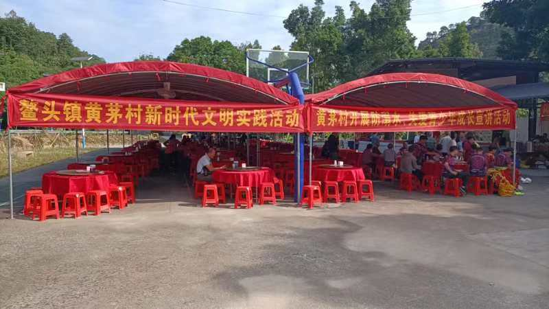 黄茅村第七届敬老奖学活动,在2024年10月10日举办,邀请全村60周岁以上老人共进午餐,观看表演节目,老人共计315人,午餐费用支出21700元,组织志愿者与老人围坐聊天,倾听其人生故事,传递社会关怀,让老人感受节日温暖,减少孤独感。弘扬“尊老、敬老、爱老”传统美德,营造社区孝亲氛围。